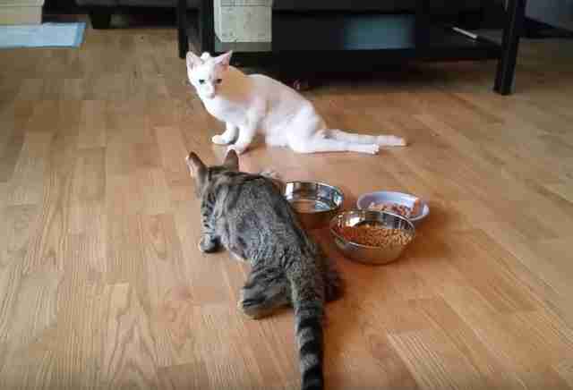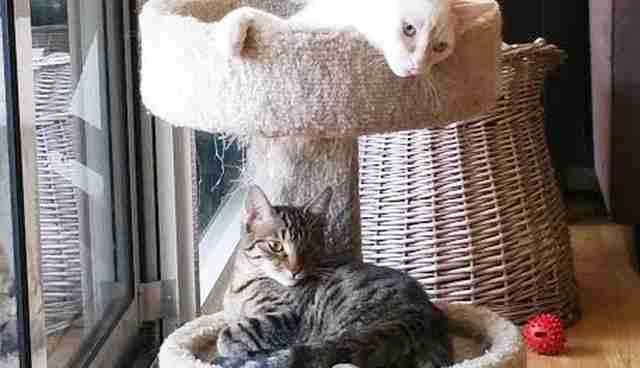 When Mohawk and Paddywhack were found dumped in a cardboard box, their rescuers figured the cats had lost movement in their back legs because of their cruel confinement. Source TheDodo